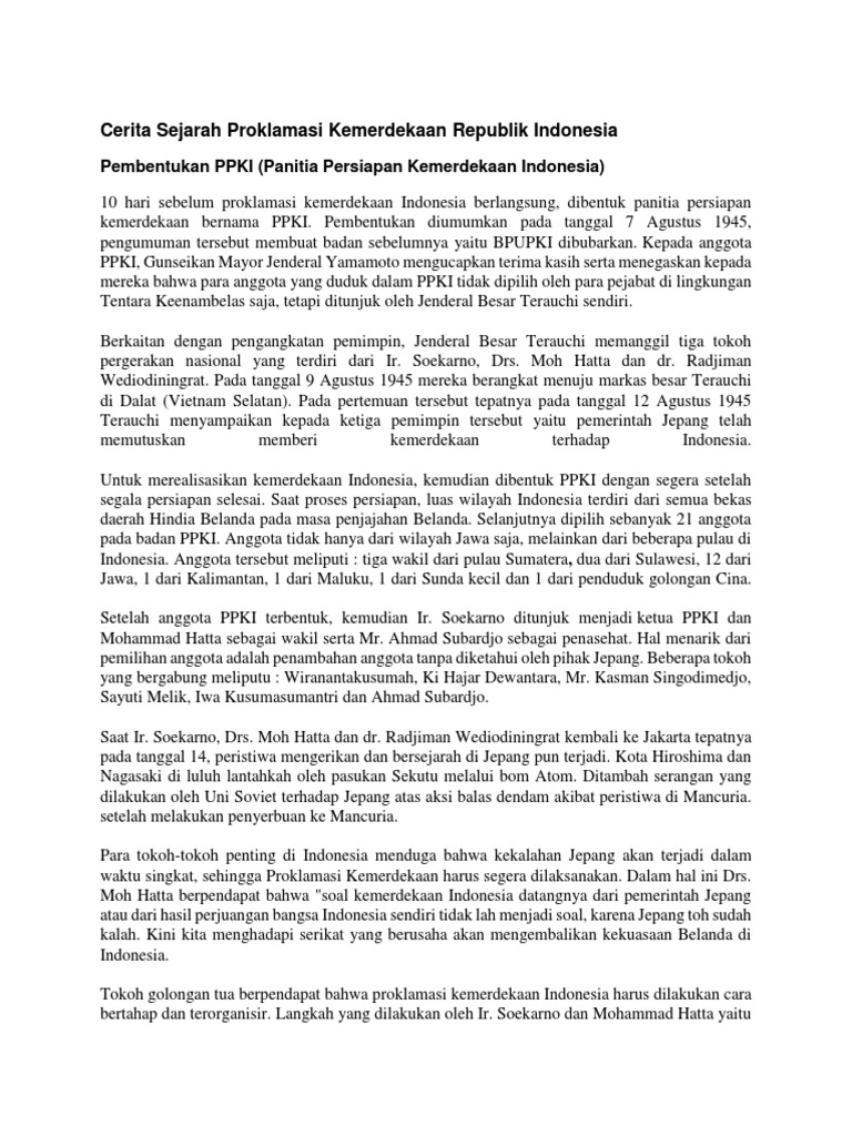 Teks Cerita Sejarah Proklamasi Kemerdekaan Indonesia Pdf